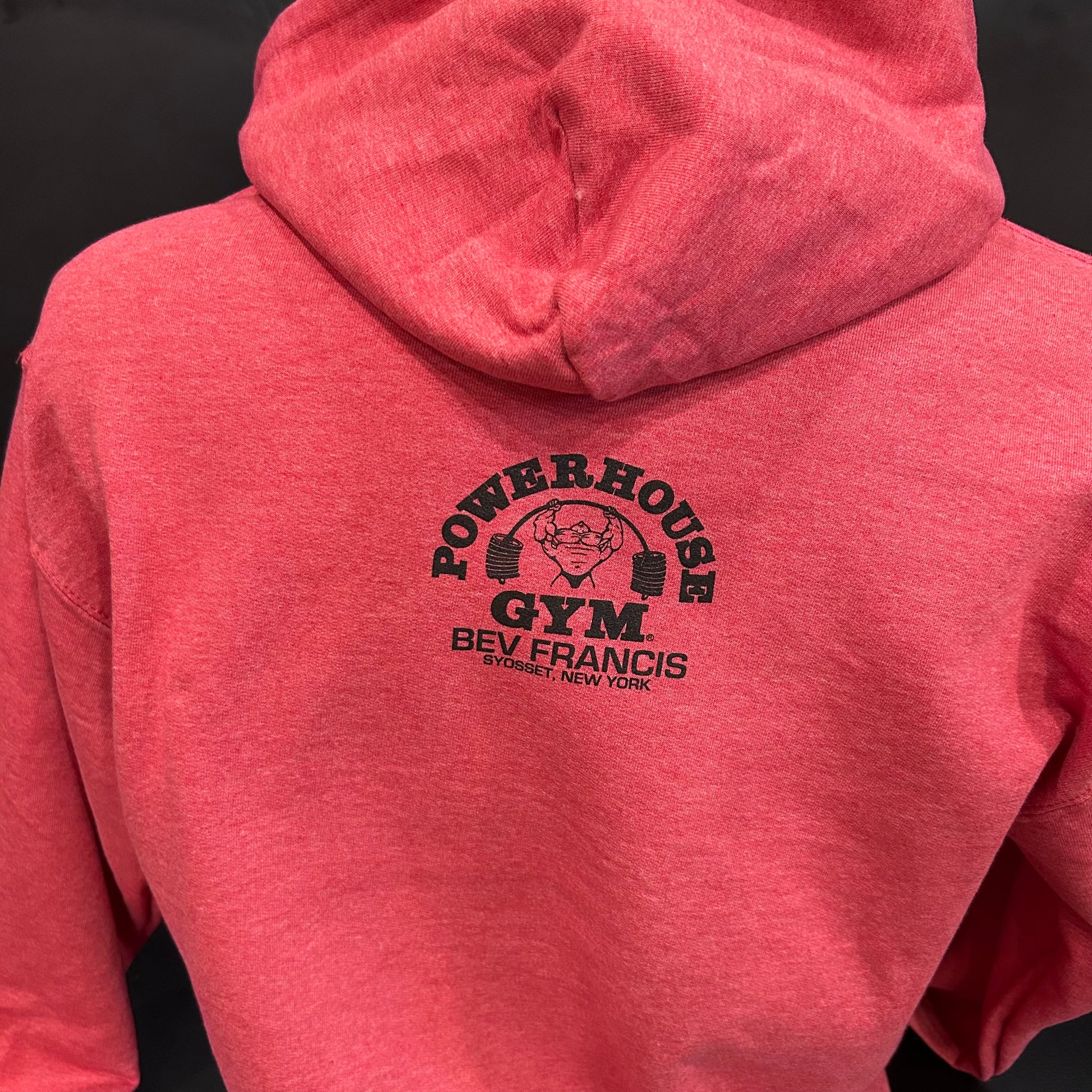 Official Bev Francis Powerhouse Gym unisex pullover hoodie, featuring the iconic Powerhouse logo on the front and smaller on back.